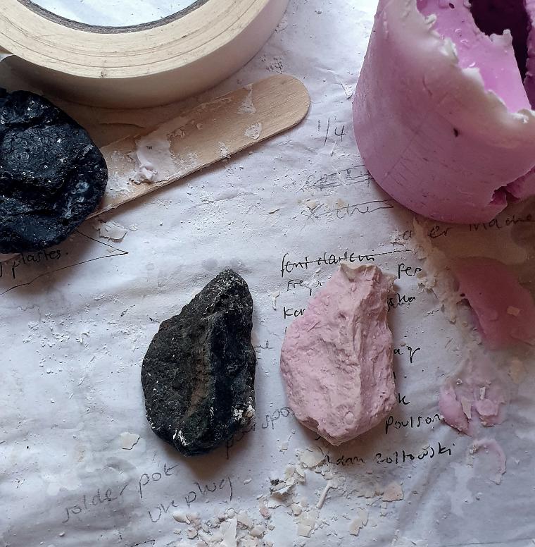 With thanks to Dr Lonneke Goddijn-Murphy, a research fellow at the UHI Environmental Research Unit for doing experiments with Thermal infrared imaging. Also specialist museum artefact scanners ThinkSEE 3D to scan and model pebbles from my pyroplastic beach finds, and biomaterials artist Kaitlin Ferguson for test 3d printing new pebbles in biomaterials such as coffee, seaweed, sodium alienate, chalk and wood, incorporating the compound strontium aluminate to make them glow.