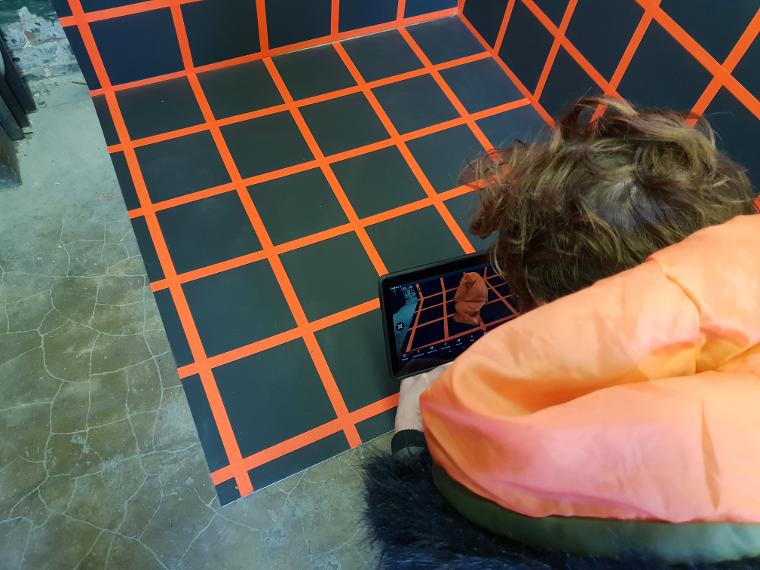 LAST TO GO - mixed reality installation (3D scanned sculpture, wood/tape, AR application) 2018
